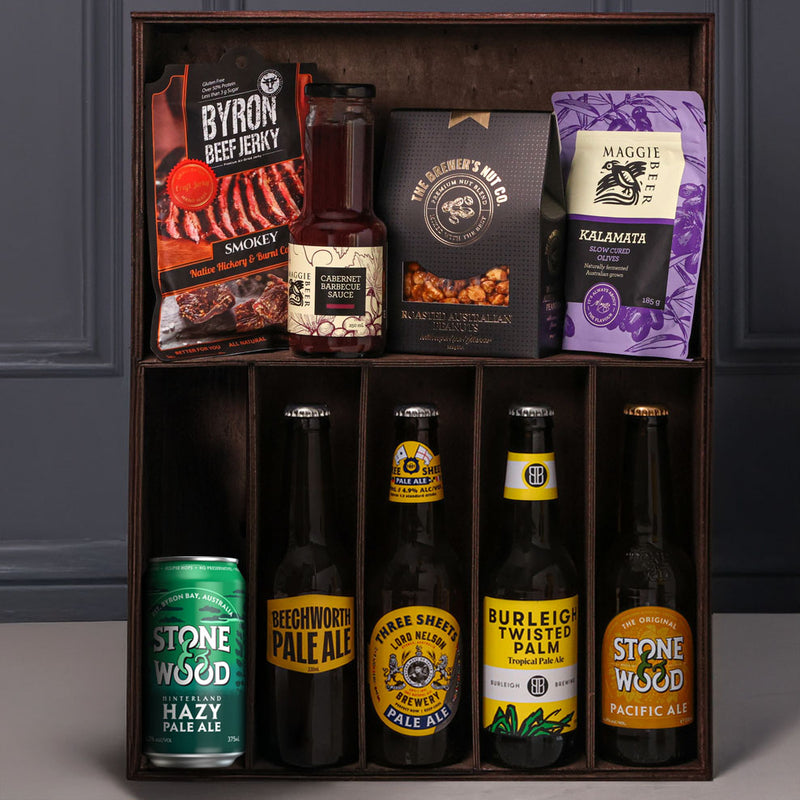 Send them off to explore Australia's smaller beer brewers and their ales with nibbles and BBQ goodies.