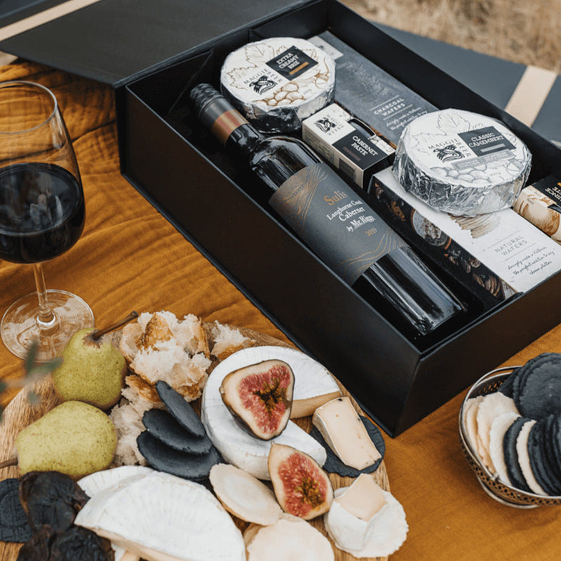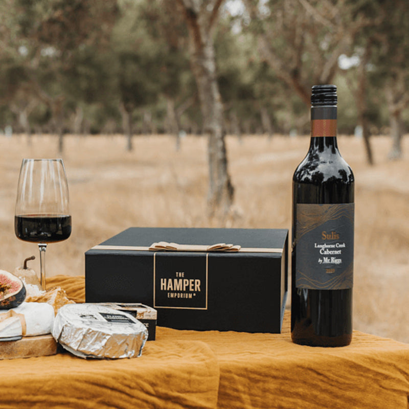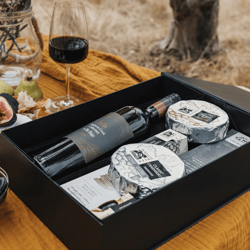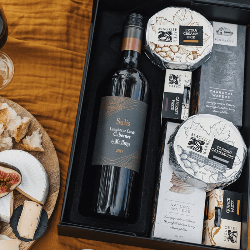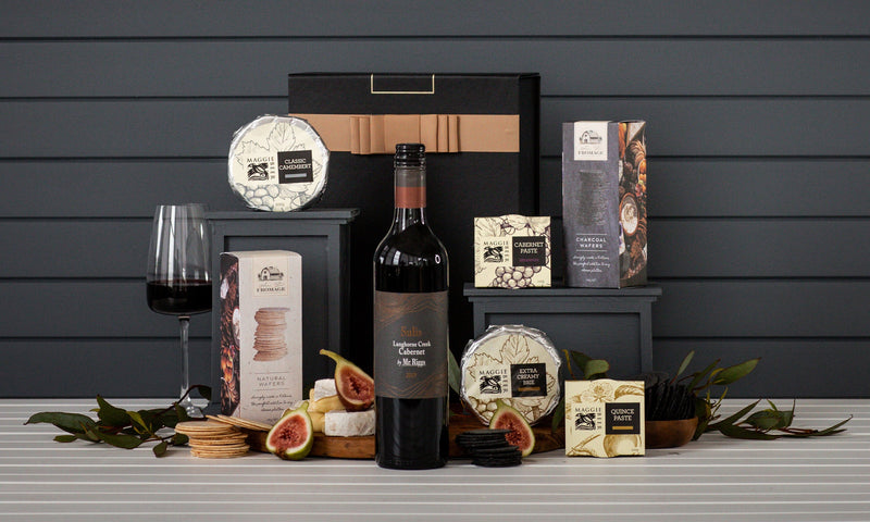 This classic cheese hamper offers a toast with a South Australian red wine and bites of Maggie Beer's cheese.