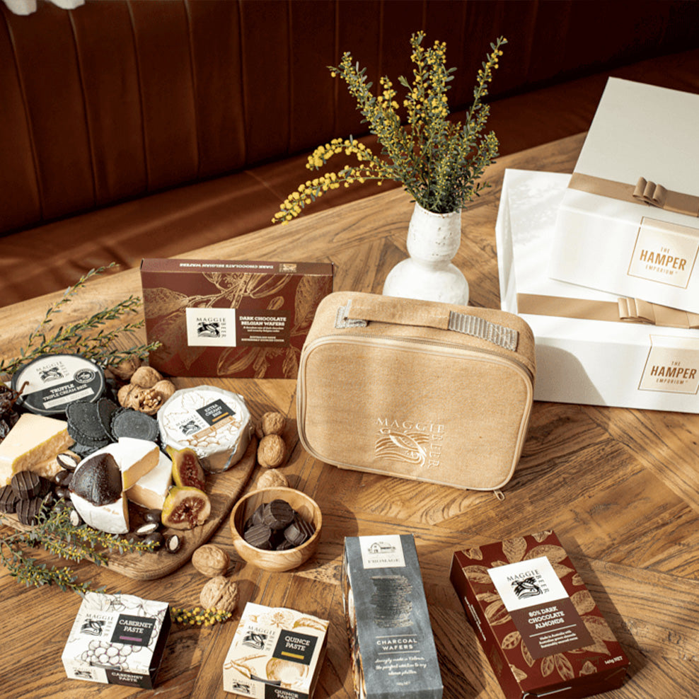Spoil your gift recipient with a decadent selection of Maggie Beer's cheeses, chocolates, and fruit pastes.