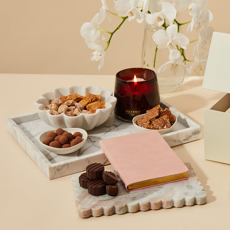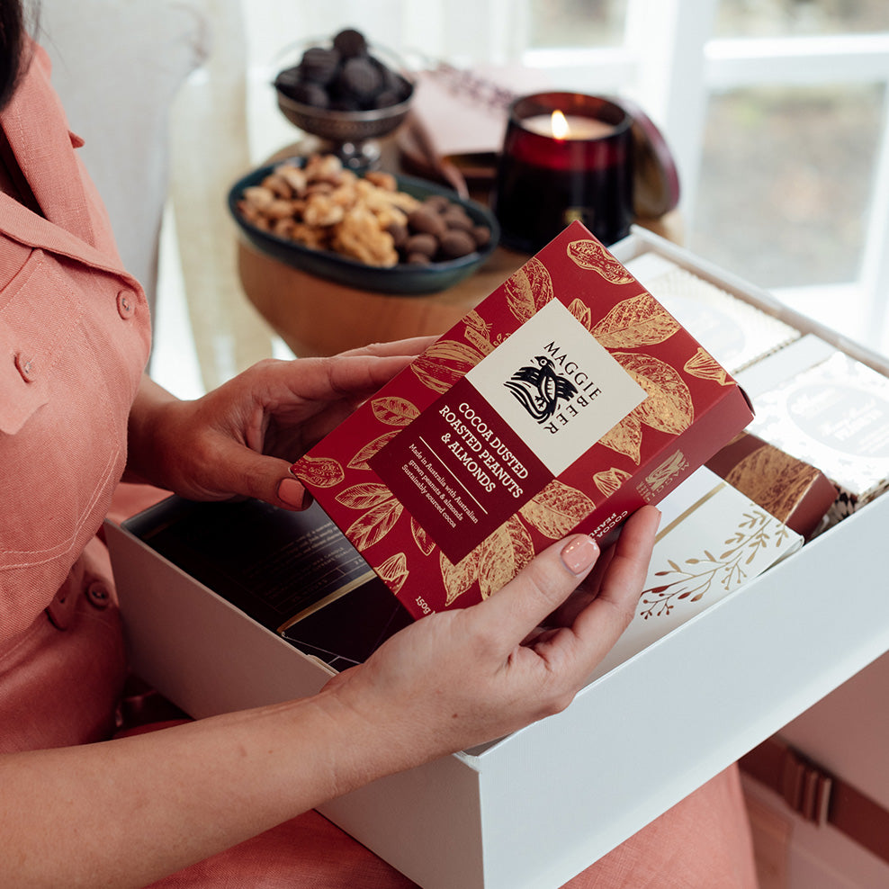 Relax them with Maggie Beer's Belgian Wafers, nutty nibbles, and the aroma of a hand-poured candle.