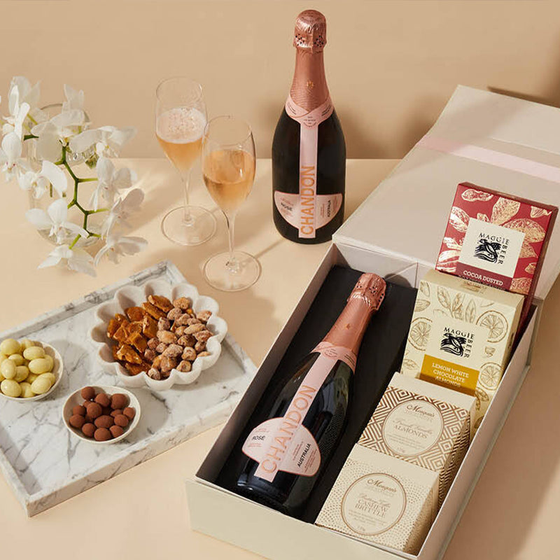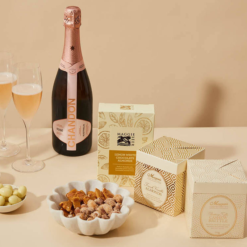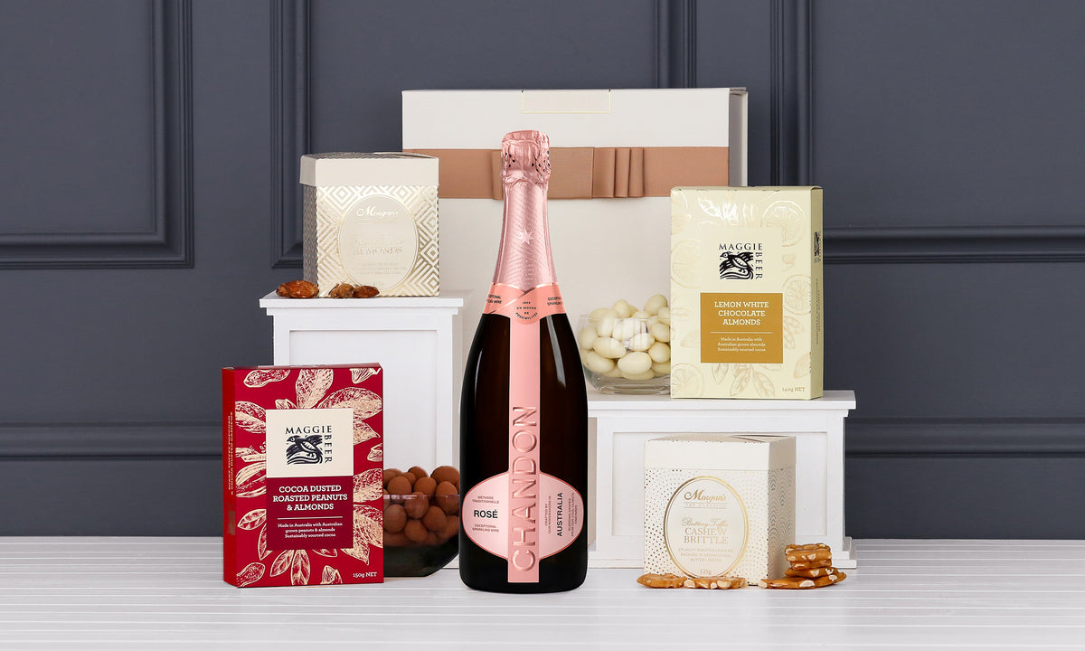 This Rosé hamper offers a drop that's floral and bubbly, one that pairs very well with Maggie Beer's sweets!