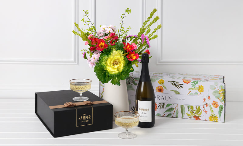 Celebrate the occasion with a sparkling wine toast and a bouquet of Floraly's fresh flowers. (Sydney only)