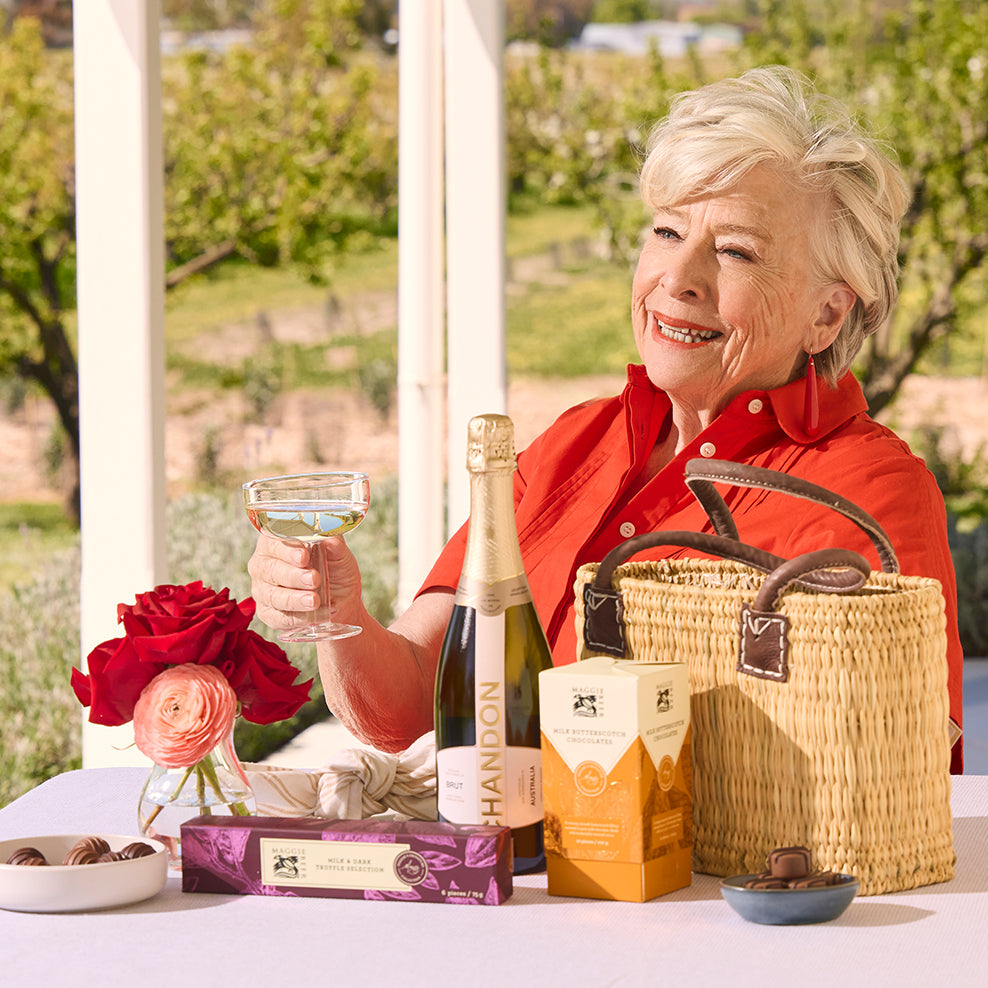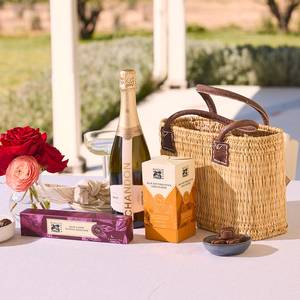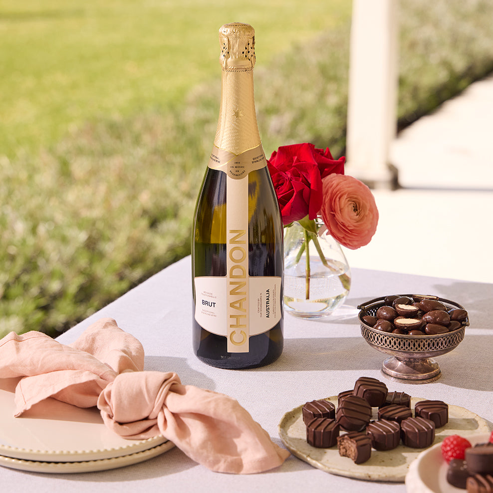When your gift recipient opens this gift, they'll be surprised with a chocolate and Chandon toast!