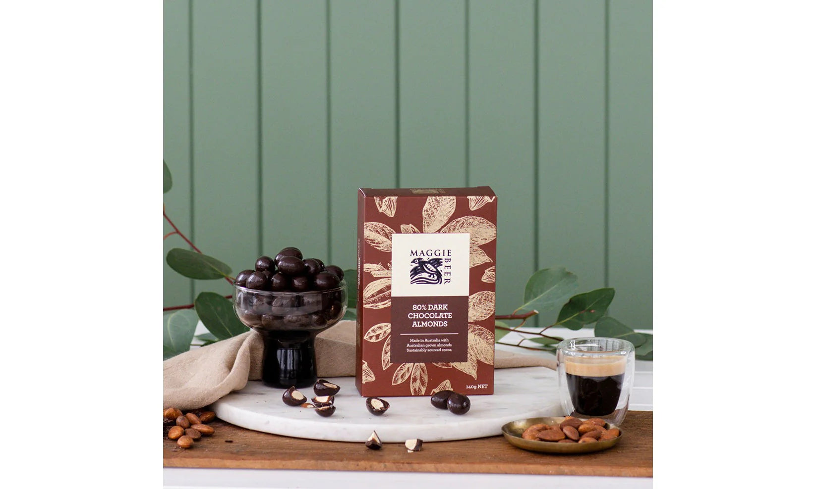 Psst... you've found our Maggie Beer's Dark Chocolate Almonds 120g! This little gem is so popular, we've tucked it away inside our fabulous hampers, making every gift extra special. Want to find it? Dive into our hamper selection and see what other hand-picked products you can find!