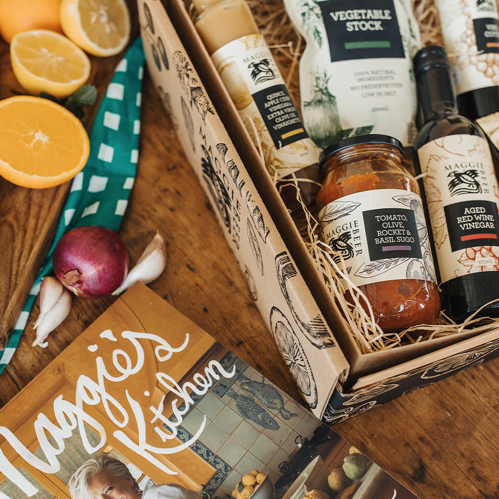 Maggie Beer's iconic Maggie's Kitchen cookbook belongs in every kitchen, find it and more in this hamper.