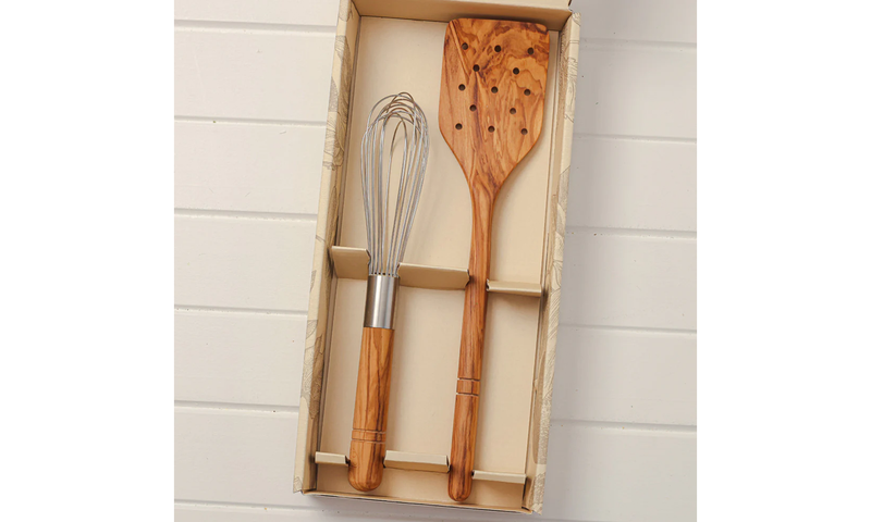 Psst... you've found our Maggie Living Olive Wood French Whisk & Turner Set! This little gem is so popular, we've tucked it away inside our fabulous hampers, making every gift extra special. Want to find it? Dive into our hamper selection and see what other hand-picked products you can find!