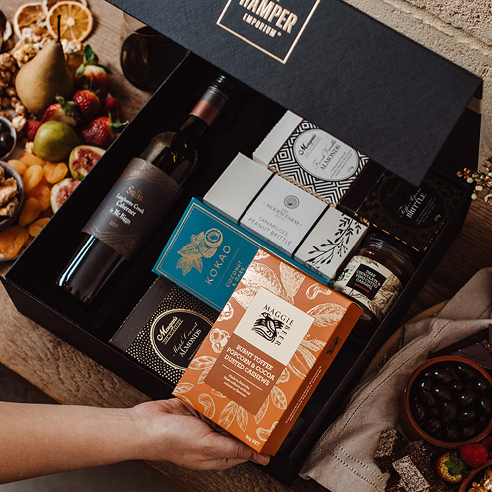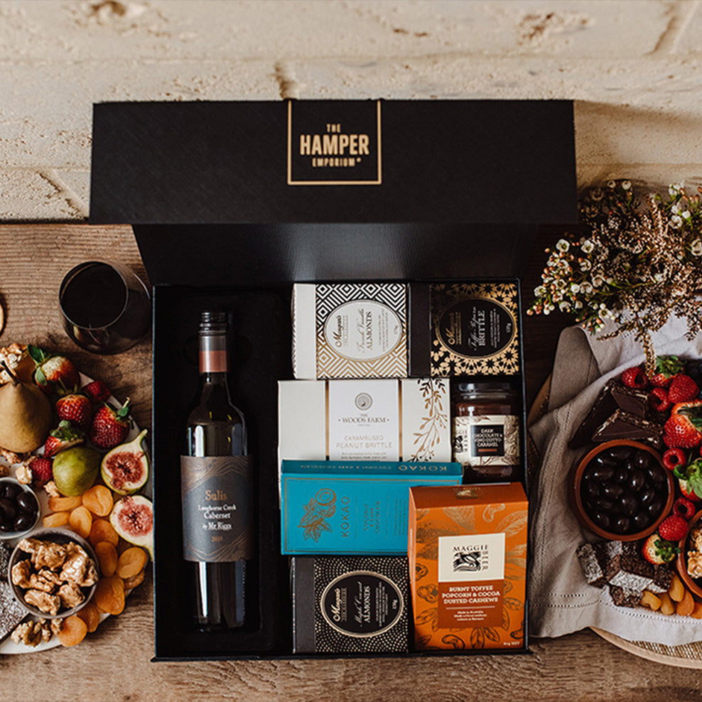 Make their day sweet and fun with a bottle of South Australian red wine and nutty treats.
