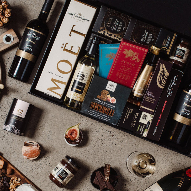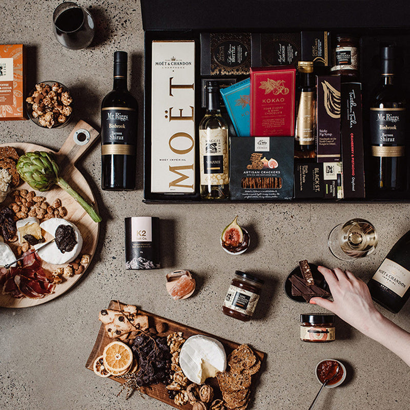 Why choose between red wine and champagne!? Enjoy this hamper's gourmet bites with Moët and a Barossa Shiraz.