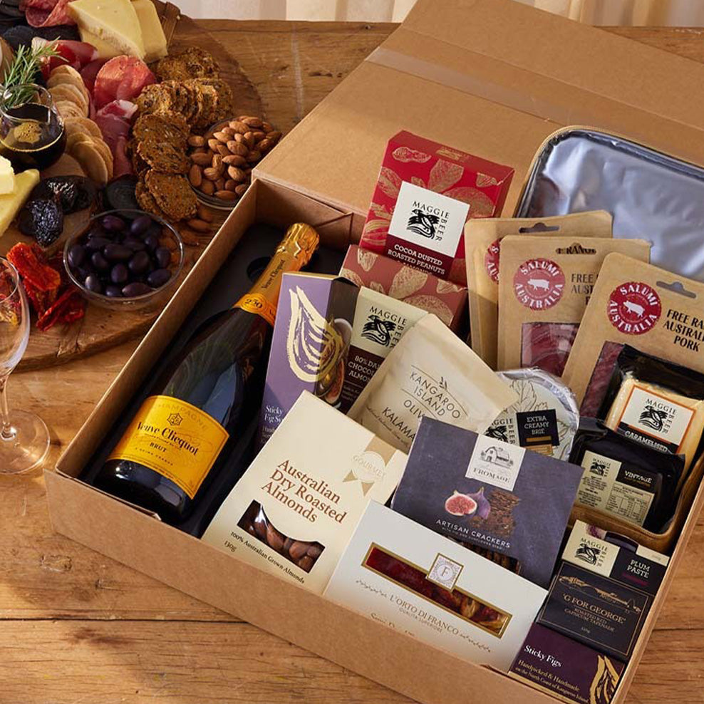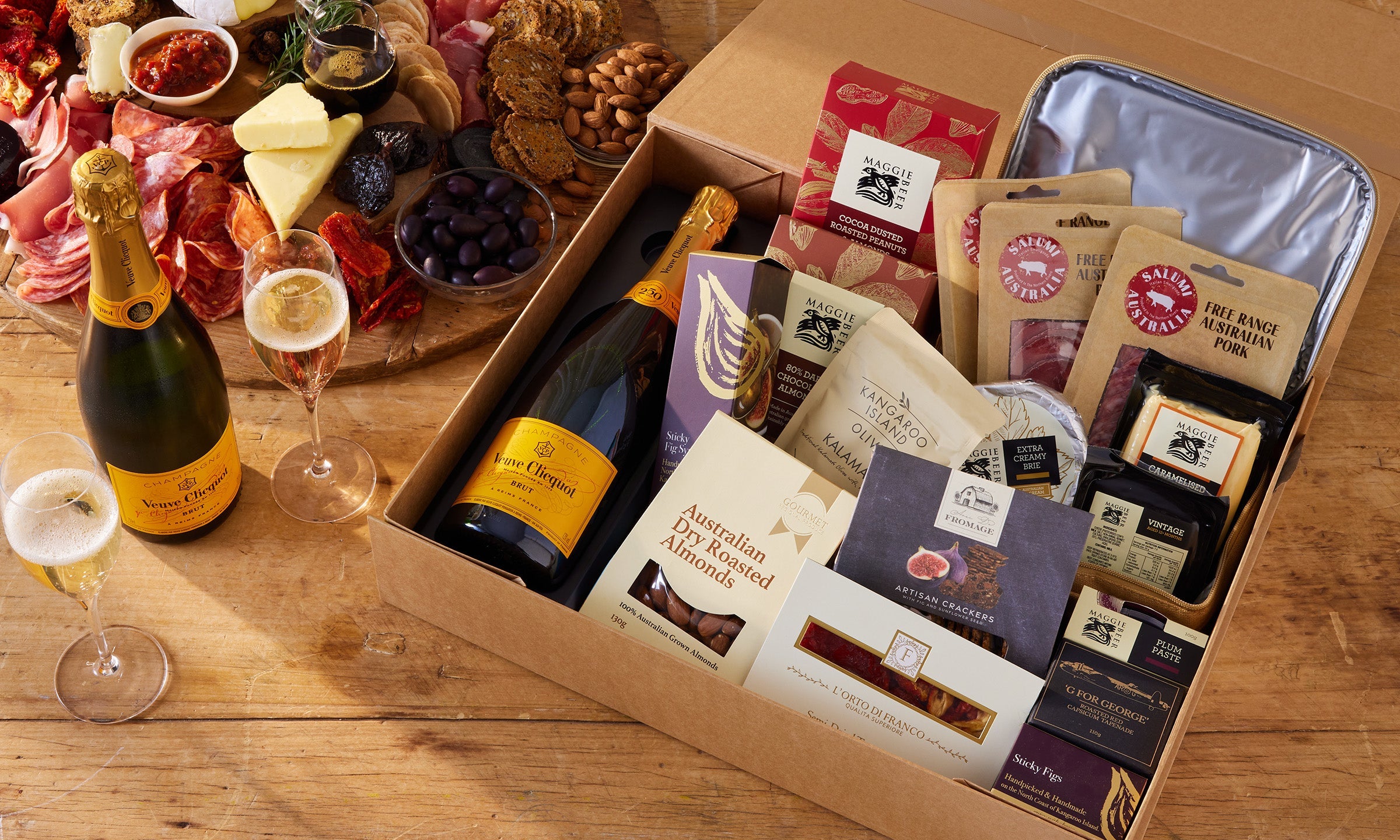 Make it a moment to remember by giving them this Maggie Beer cheese hamper and Veuve Clicquot for toasting.
